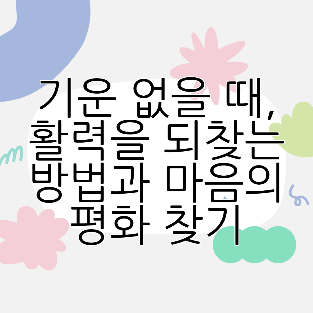 현대 사회에서 우리는 끊임없이 스트레스를 받고, 업무와 생활의 압박감 속에서 기운이 빠지는 경험을 자주 하게 됩니다. 기운 없을 때, 우리는 어떻게 다시 에너지를 회복하고 마음의 평화를 찾을 수 있을까요? 이 질문은 많은 이들이 공감할 만한 주제이며, 그 해결책을 찾는 과정은 우리에게 많은 통찰을 줄 수 있습니다.