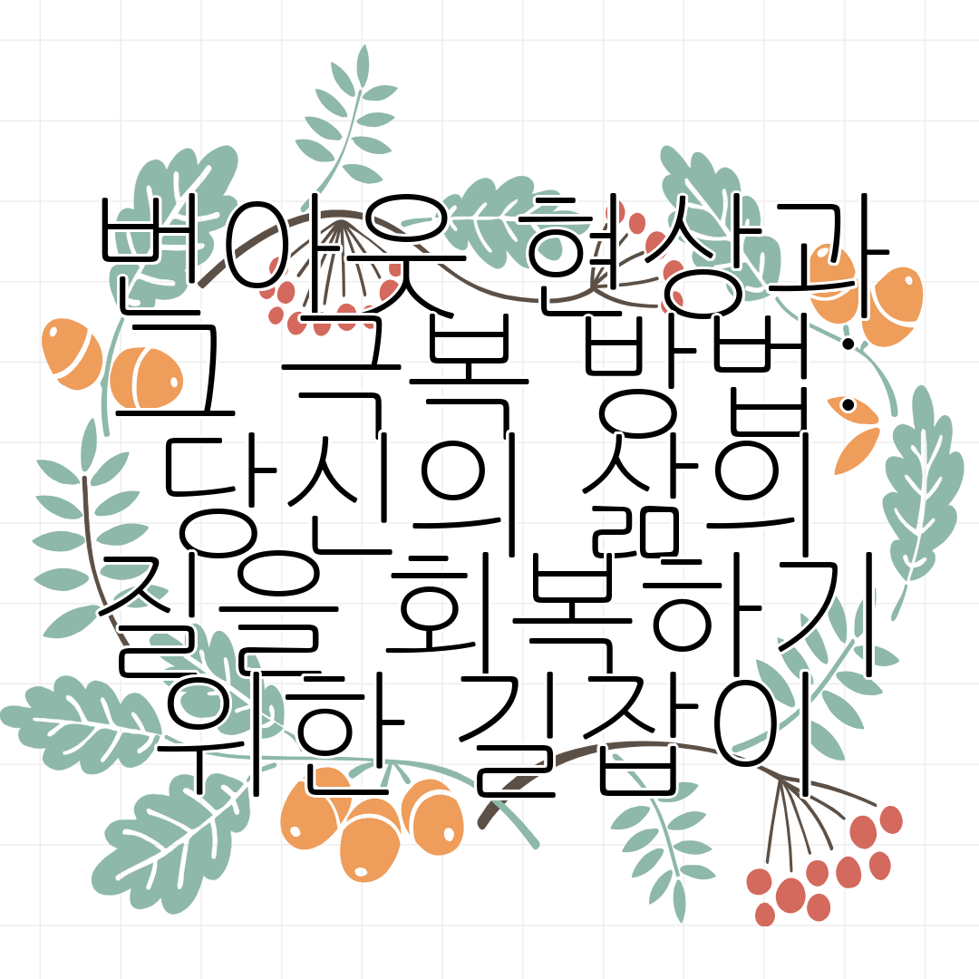 번아웃은 현대 사회에서 많은 사람들이 겪고 있는 심리적 증상으로, 주로 직장에서의 스트레스가 누적되어 발생한다. 이 상태는 단순히 피로해지는 것을 넘어, 정신적 및 육체적 풀이라는 특징을 지닌다. 처음에는 경미한 피로감으로 시작하지만, 시간이 지남에 따라 극심한 탈진상태로 이어질 수 있다.