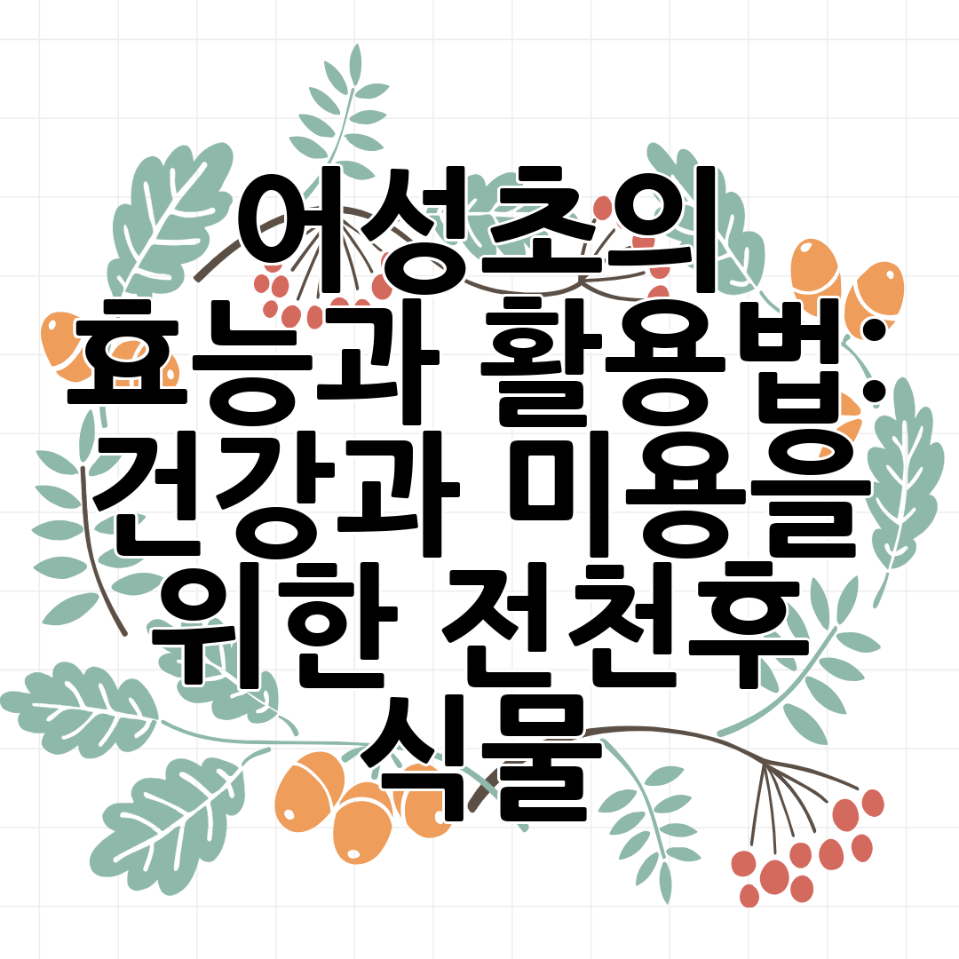 어성초는 건강과 미용에 폭넓게 활용될 수 있는 천연 약용 식물입니다. 위에서 언급한 여러 효능과 활용법을 통해 일상생활 속에서 간편하게 incorporate 할 수 있습니다. 어성초는 자연이 주는 귀중한 선물로, 이를 통해 건강한 삶을 지향할 수 있기를 바랍니다.