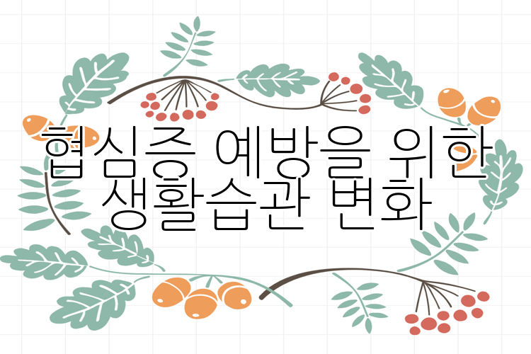 협심증을 예방하기 위해 필요한 생활습관 변화는 다음과 같습니다: